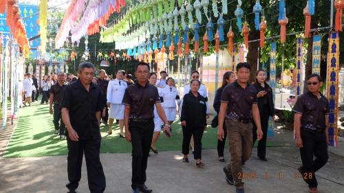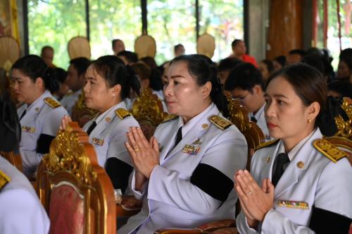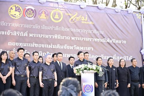 ภายในพิธีมีการยืนสงบนิ่งถวายความอาลัย 1 นาที พิธีบำเพ็ญกุศล อุทิศถวายเป็นพระราชกุศล พร้อมด้วยพระสงฆ์ จำนวน 10 รูป สวดพระพุทธมนต์ การทอดผ้าไตรบังสุกุล จำนวน 10 ไตร และพิธีการทอดผ้าป่าสมทบกองทุนแม่ของแผ่นดิน และกองทุนหมู่บ้านป้องกันและแก้ไขปัญหายาเสพติด โดยกองทุนแม่ของแผ่นดินจังหวัดพะเยายอดผ้าป่าฯ ทั้งสิ้น จำนวน 299,240 บาท หลังจากนั้นได้มอบโล่รางวัล และใบประกาศเกียรติคุณแก่หมู่บ้านกองทุนแม่ของแผ่นดินดีเด่นจังหวัดพะเยา ประจำปีงบประมาณ พ.ศ. 2568 จำนวน 9 หมู่บ้าน ในส่วนของอำเภอเชียงม่วน ได้แก่ หมู่บ้านกองทุนแม่ของแผ่นดินบ้านกลาง หมู่ที่ 9 ตำบลเชียงม่วน อำเภอเชียงม่วน จังหวัดพะเยา