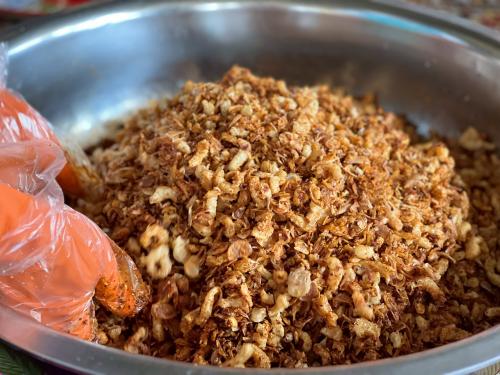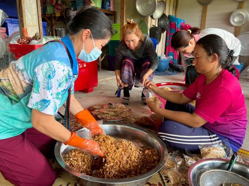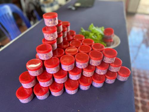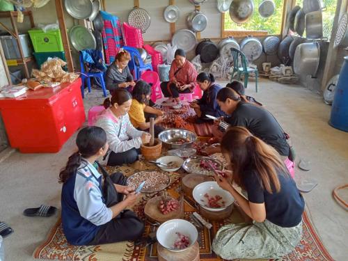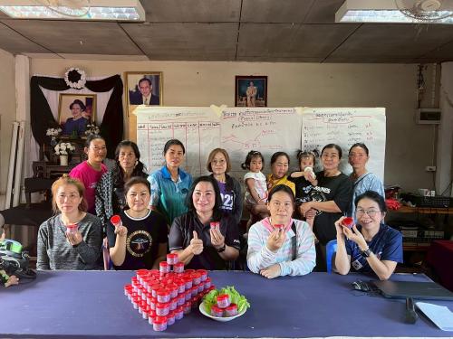 โดยได้มีการสาธิตการทำ "น้ำพริกน้ำย้อย" เพื่อเป็นแนวทางในการสร้างอาชีพและสร้างรายได้ให้แก่ครัวเรือนเป้าหมาย ทั้งนี้ทางกลุ่มได้มีแผนนำผลิตภัณฑ์ดังกล่าวขึ้นทะเบียน OTOP เพื่อส่งเสริมเป็นสินค้าชุมชนและการสร้างงานสร้างรายได้ ส่งเสริมเศรษฐกิจฐานรากให้มั่นคง ![]()