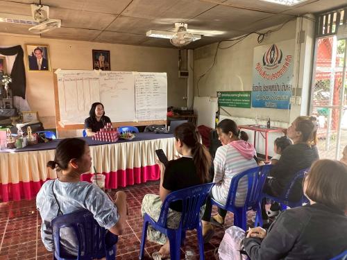 นางสาวสารภี มีปาน พัฒนาการอำเภอเชียงม่วน พร้อมด้วย เจ้าหน้าที่สำนักงานพัฒนาชุมชนดำเนินโครงการเพื่อส่งเสริมการออมและวางแผนบริหารจัดการทักษะทางการเงินพร้อมนำหลักปรัชญาเศรษฐกิจพอเพียงมาประยุกต์ใช้ในชีวิตประจำวัน กรณีศึกษาต่างๆ และการสร้างช่องทางการจำหน่ายเพื่อเป็นการส่งเสริมอาชีพให้แก่ครัวเรือนและชุมชน ให้กับกลุ่มออมทรัพย์เพื่อการผลิตบ้านท่าฟ้าหล่าย ณ หอประชุมบ้านท่าฟ้าหล่าย หมู่ที่ 6 ตำบลสระ อำเภอเชียงม่วน จังหวัดพะเยา
